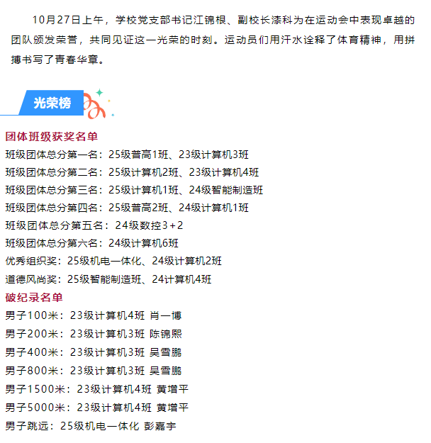 晨光熹微中,上栗县职业中等专业学校的校园里洋溢着青春的气息与运动的激情。10月22日上午,我们满怀激情与期待,共同迎来了学校2025年第七届秋季田径运动会。在这里,我们将见证奇迹的诞生,感受青春的无限可能。