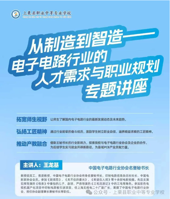 此次讲座是我校 “行业大咖进校园” 系列活动的重要组成部分,不仅让师生近距离感受了行业泰斗的人格魅力与工匠精神,更搭建了校、行、企三方交流的桥梁。未来,我校将持续推进产教融合,邀请更多行业精英、技术专家走进校园,优化人才培养模式,为电子电路等重点产业培育更多 “肯吃苦、善思考、强技能” 的新时代中职人才,助力职业教育高质量发展!
