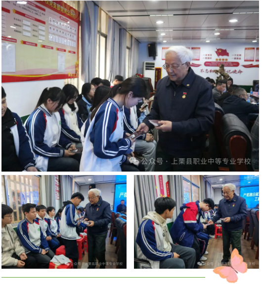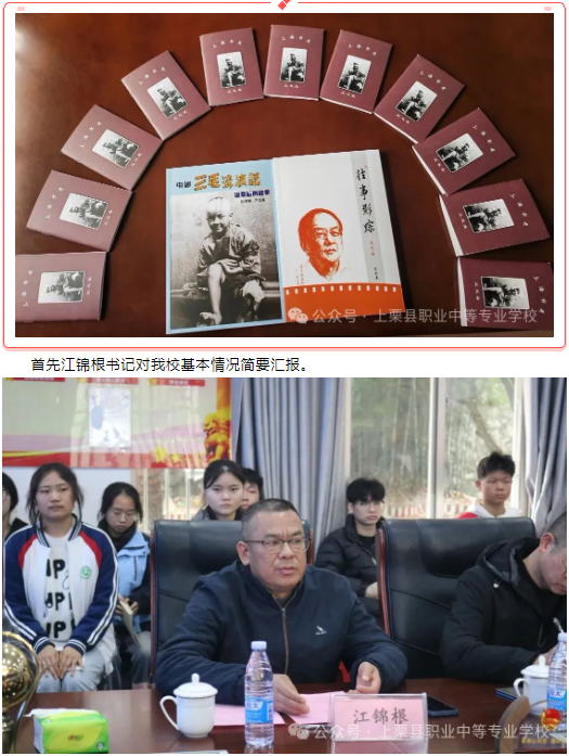 接着进行”产教融合赋能 工匠精神筑梦“交流座谈会,我校党支部书记江锦根、副校长彭炜、漆科,各部门主任和20余名学生参加座谈会。热情的王秘书长亲自为学生赠送本人生涯经历纪念册。